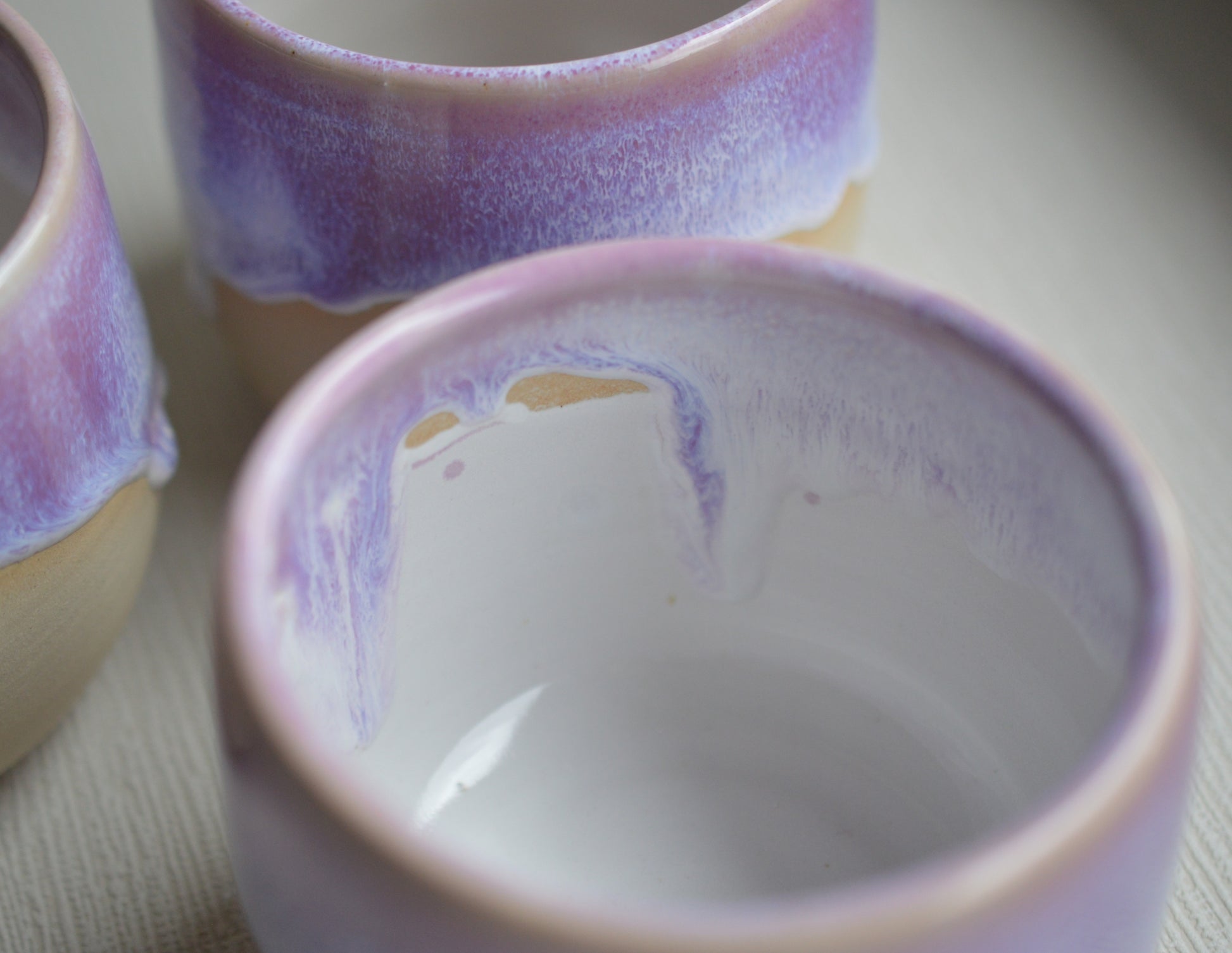Jeder Becher wird mit Sorgfalt und Liebe in Handarbeit hergestellt, wodurch er zu einem Unikat wird. Das sorgt auch dafür, dass jedes Stück ein Einzelstück ist. Form, Farbe und Größe können daher abweichen. Bei der Glasur kann es dazu kommen, dass sich die Glasur innen leicht verzeiht (Siehe Bild). Das beeinträchtigt die Funktion der Keramik nicht.